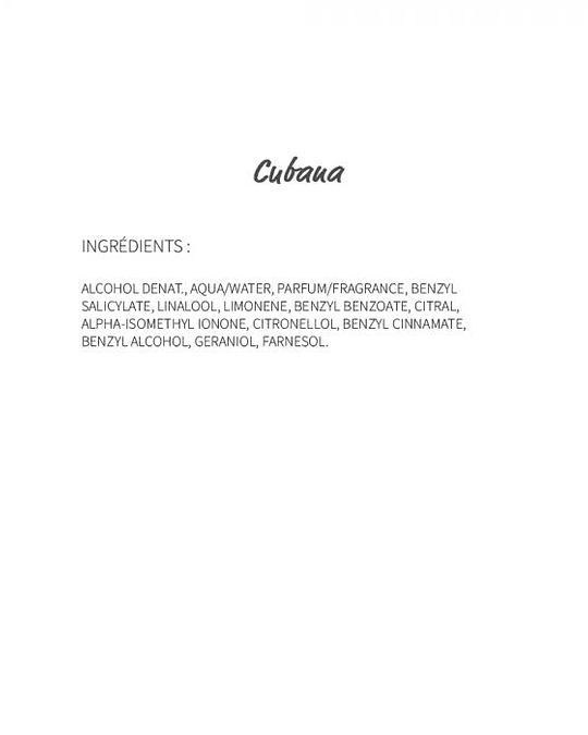 Baila al ritmo de Cuba con este aroma realmente cálido y afrutado. Descubre una salsa apasionada de Cítrico sin complicaciones, seguida de una rumba inflamada con Ylang-Ylang y Mango. Un soleado acuerdo de Vainilla y Almizcle se unen al baile en un abrasador cha-cha-cha para una extravagante estela